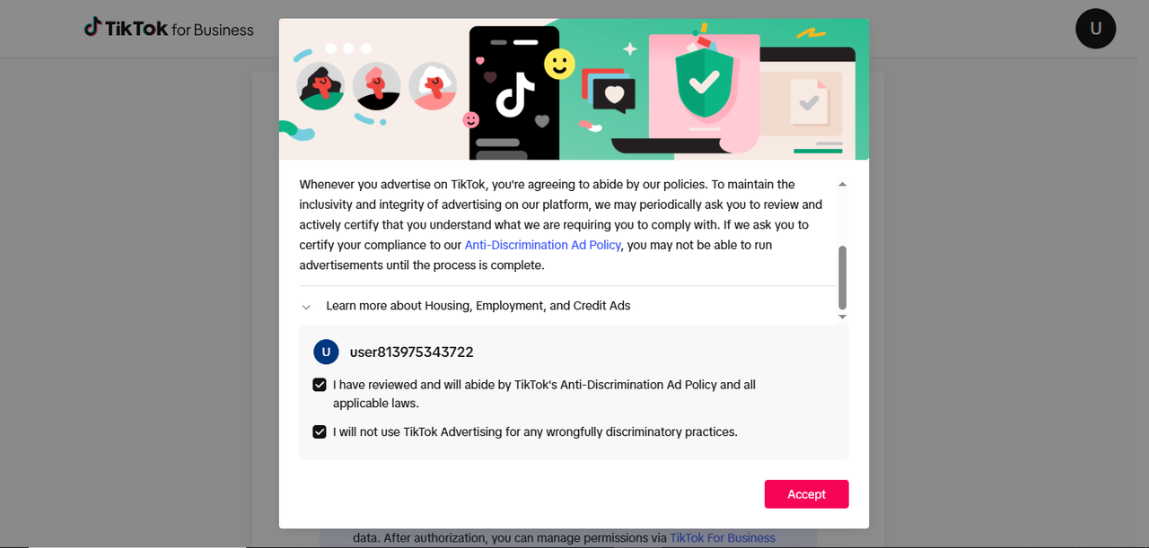 Congratulations! Your Ad Account has been created and is now under review by TikTok. Please note that it may take 3-6 hours for TikTok to review the account