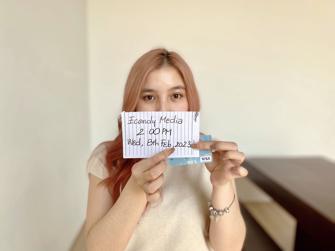 For Physical Cards — send a photo of you holding your card and a handwritten note: