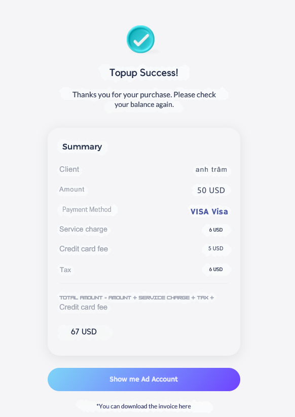 You will see Top up successfully once the payment is approved.