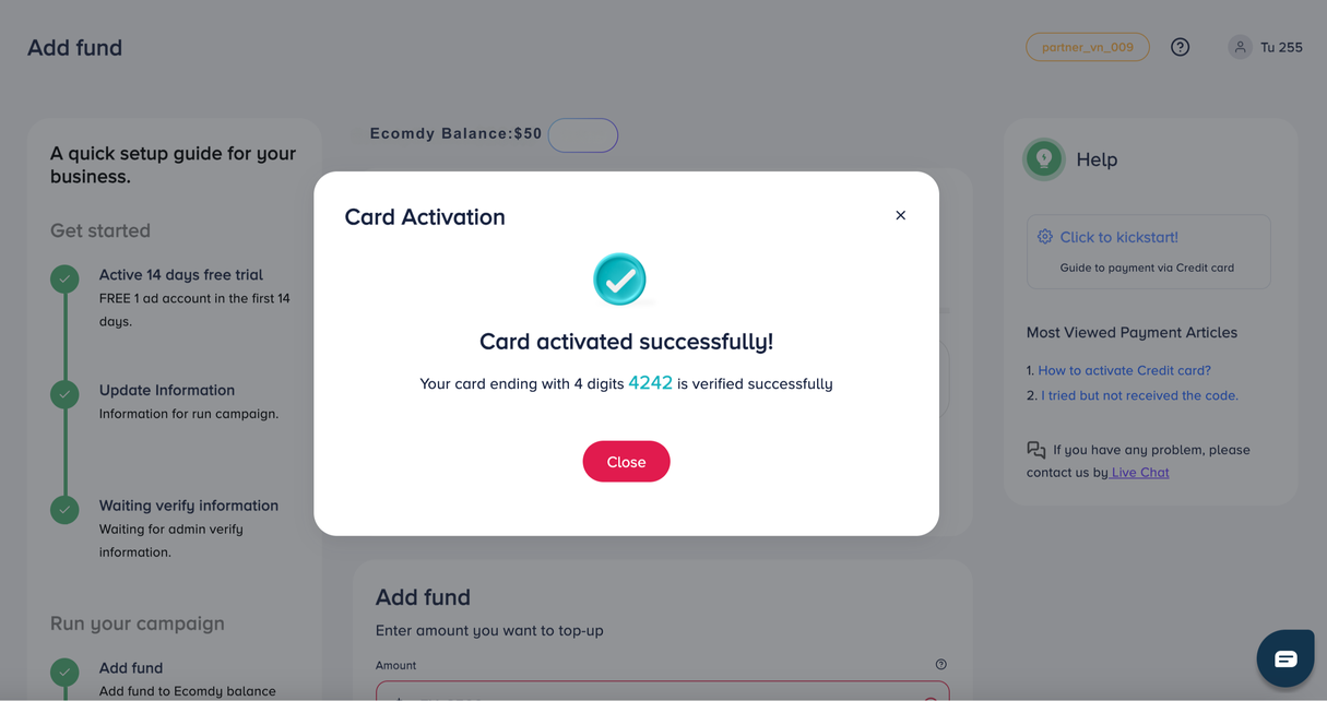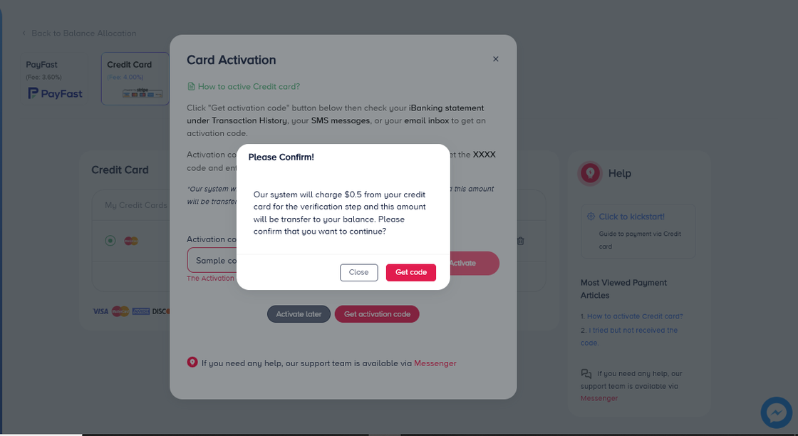 This guide explains how to add, activate, use, and remove a credit card to top up your account balance. It also covers how to find the OTP (activation code), what to do if you don’t receive it, and how to resolve common decline errors.